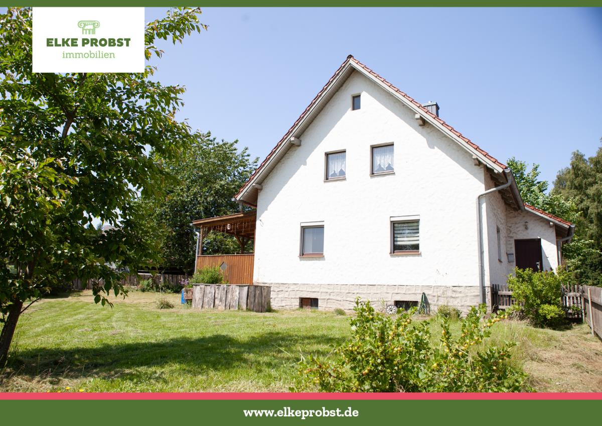 Dieses Haus hat Potential, wenn denn man Sanierungsarbeiten nicht scheut. Das Dach wurde erneuert und der Anbau einer riesigen und überdachten Terrasse mit Zugang in den uneinsehbaren Garten machen das Projekt für die Erneuerung lohnenswert. Es besteht sogar die Möglichkeit, dass zwei Familien hier Platz finden. Das Erdgeschoss mit dem großzügigen Wohnzimmer und dem direktem Zugang auf die Terrasse sowie zur Küche, weist noch ein weiteres Zimmer und dem Bad mit Badewanne vor. Drei freundliche Zimmer gibt es im Dachgeschoss und einem Duschbad mit Fenster. Die Ausstattung selbst gestaltet sich eher einfach, aber solide. Die Attraktivität des Hauses, ist der von der Straße abgewandte Garten mit den schmackhaften Obstbäumen, geräumigem Geräteschuppen und der Holzlege. Zum Haus gehört auch eine Garage dazu und die Zufahrt bietet weiteren Stellplatz. Ins Zentrum des Ortes mit allen Geschäften, Märkten, Behörden und Schulen sowie den Freizeiteinrichtungen gelangt man in nur ca. 3-5 Minuten.